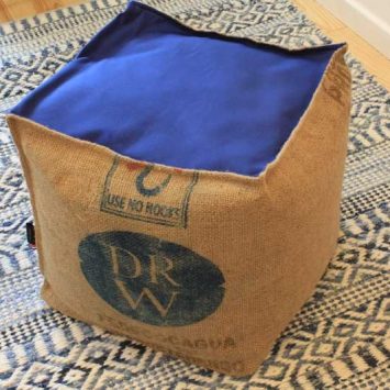 Pouf cube bleu 40x40x40 cm jute/ dralon. France.