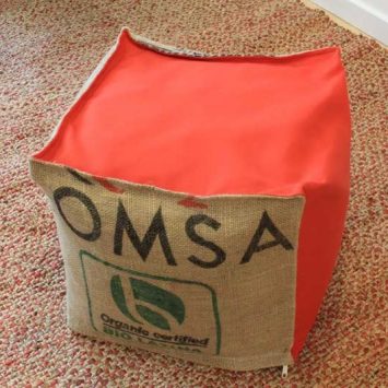 Pouf cube rouge 40x40x40 cm jute/ dralon. France.