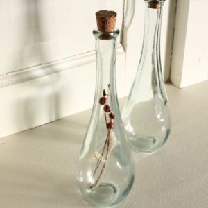 Vase « Bouteille de druide » avec bouchon de liège. Verre recyclé. Fait main.