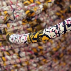 Panier à linge ou de rangement paille et wax jaune / orange recyclé.