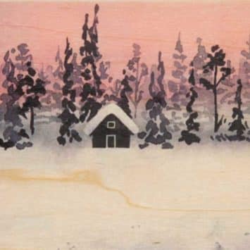 Woodhi: Carte postale « Lever du soleil en hiver » en bois d’érable du Jura. FRANCE.