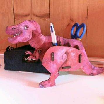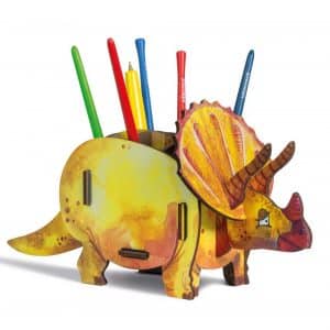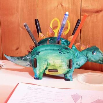 Dino- Stegosaurus pencil cup made of recycled wood. WERKHAUS