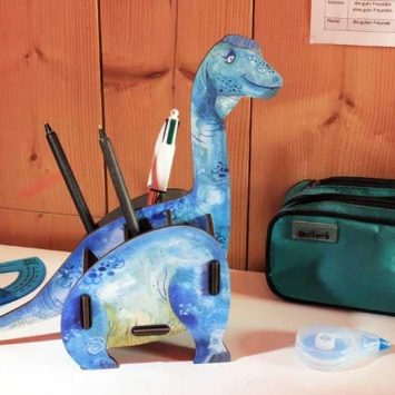 Dino- Brachiosaurus pencil cup made of recycled wood. WERKHAUS