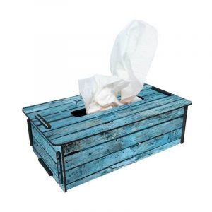 Boîte à mouchoirs « Bleu bateau » en bois recyclé. Allemagne.