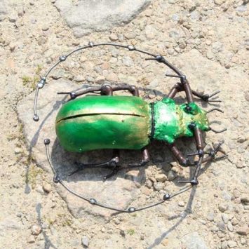 Scarabée rhinoceros à poser ou déco murale, en métal recyclé.