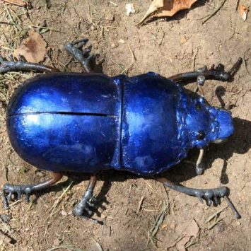 Blue beetle to be placed or wall mounted, in recycled metal.