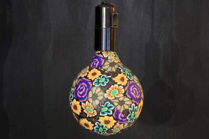 This Led bulb « classique », recouverte d’une porcelain paste appliquée selon une technique japonaise « façon patchwork », et finalisée par un traitement thermique afin de consolider cette pâte sur l’ampoule, est conçue à la main par un atelier français. On or off, l’ampoule « Flower power » is very decorative.