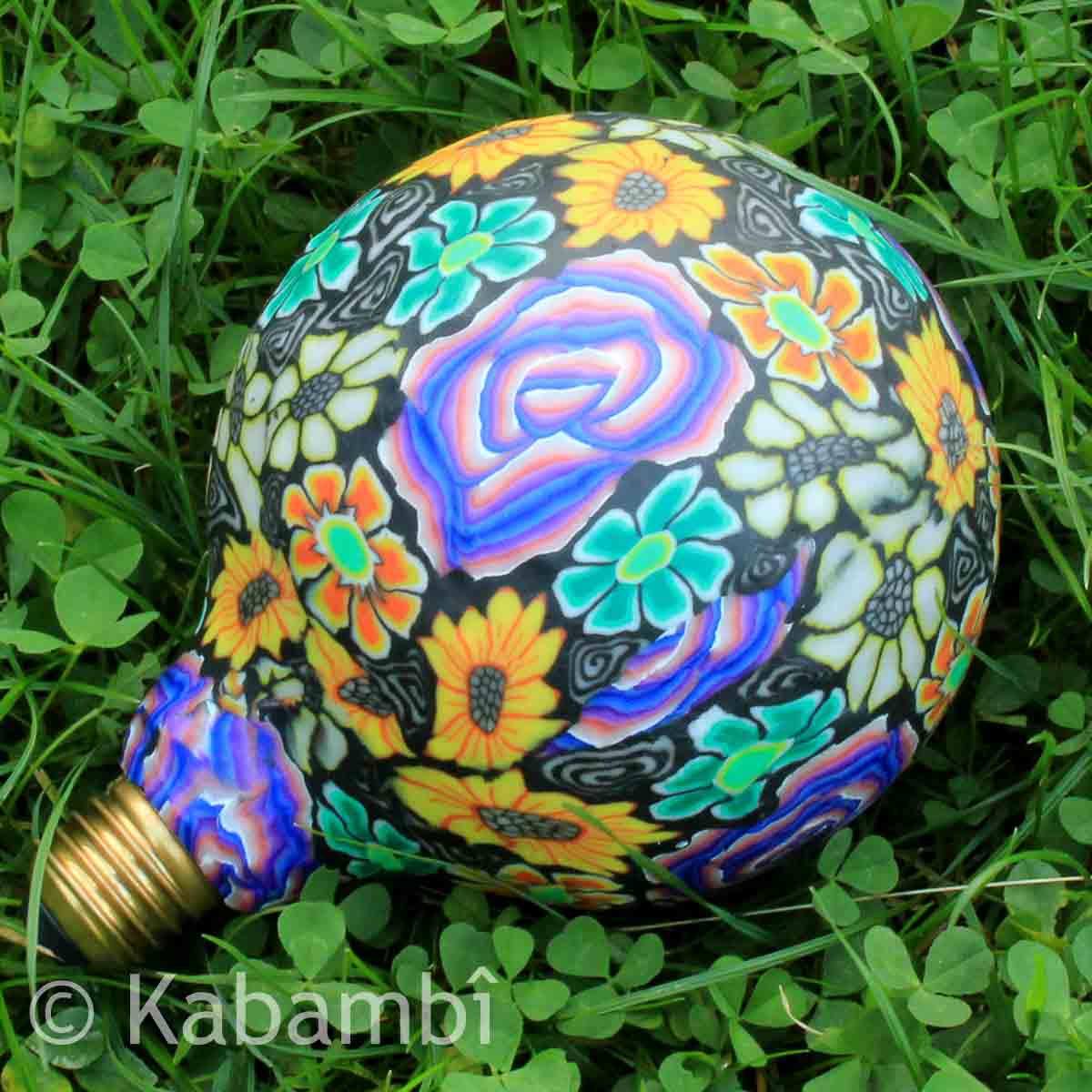 Each bulb with flowery patterns on a yellow, white or black background is handmade, it will decorate your interior and create a unique atmosphere. As a ceiling lamp, it can be placed under a lampshade, hanging as a pendant. And when placed on a lamp stand, the Flower Power bulb becomes a superb table lamp, no need for a shade! It can even give a new lease of life to an old lamp stand that you love so much!
