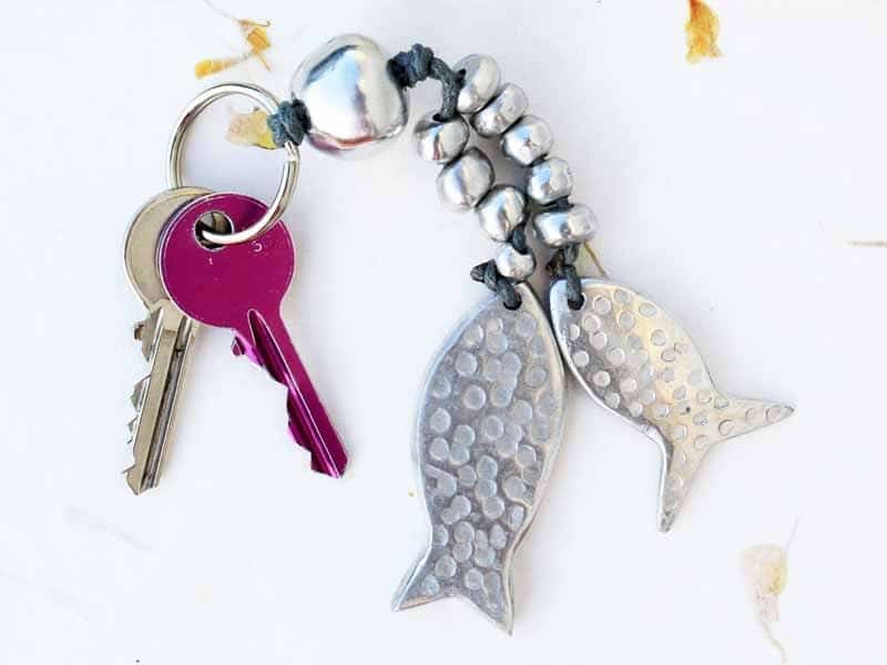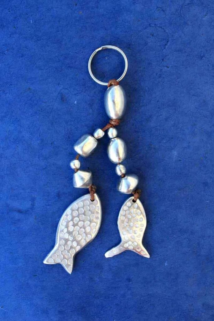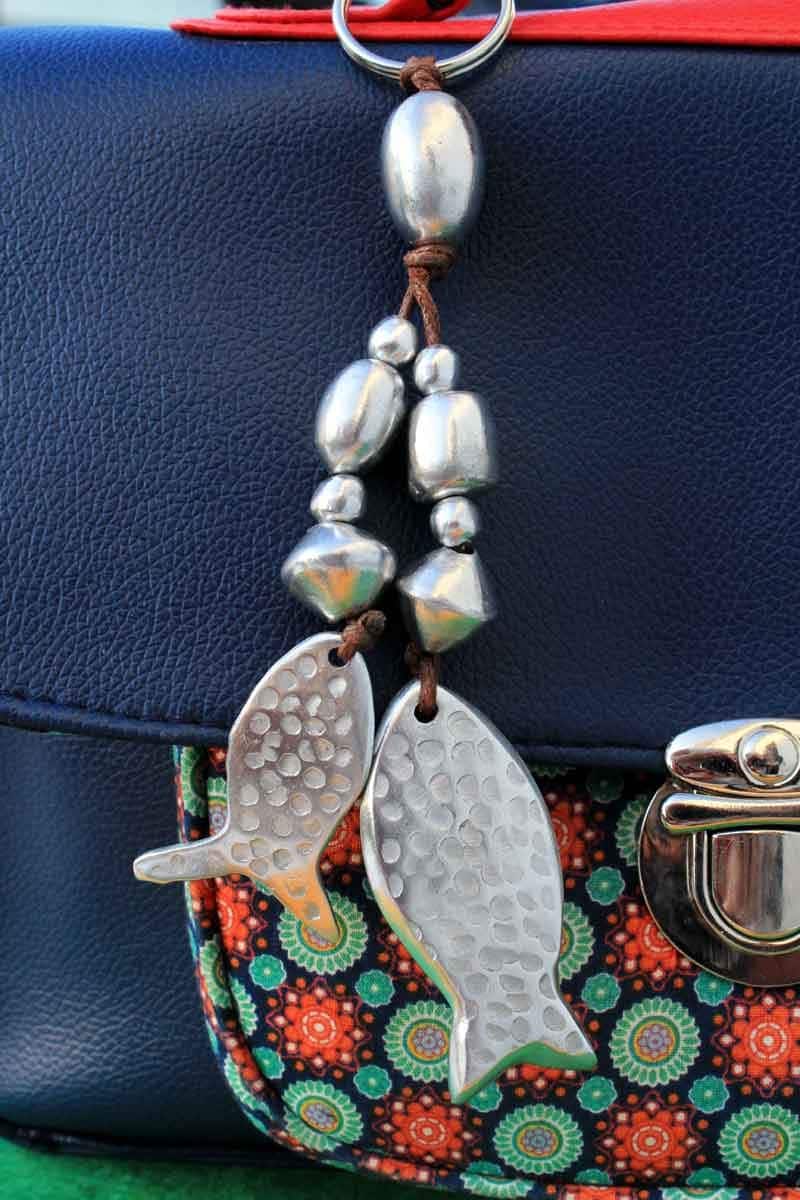Bag jewel/ Key ring "fish" in recovered aluminium.
