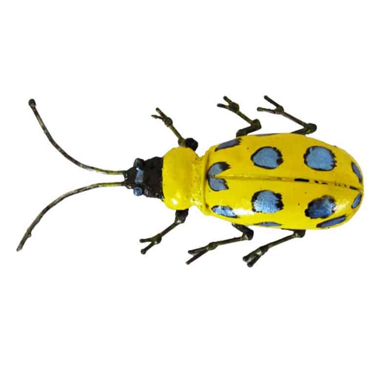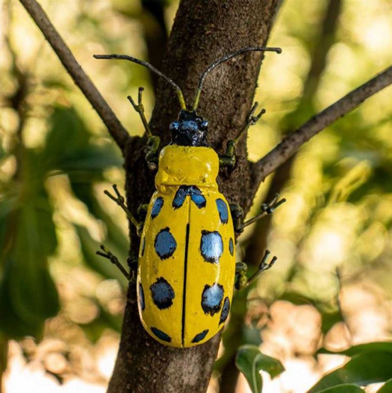 Entretien à l’extérieur: The creations of A & P are protected by an anti-corrosion varnish. Comme pour tout autre objet de métal séjournant en permanence en extérieur vous pouvez l’entretenir simplement. Appliquez au cours de l’année du Rustol ou du vernis marin sur la surface métallique de l’insecte.
