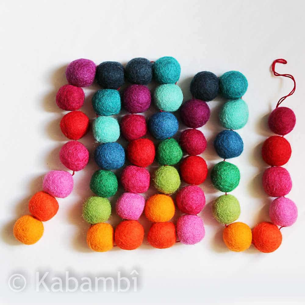 • Felt balls are made of 100% natural wool, hand sewn felted.