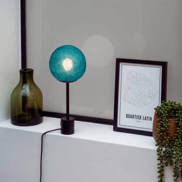Lampe à poser APAPA, globe en bleu « Paon »- La Case de Cousin Paul