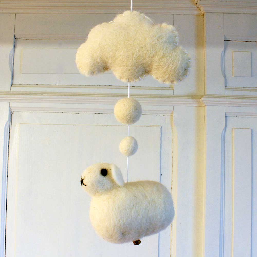 - Une déco de chambre tout en douceur avec ce mobile « Mouton et Nuage » en 100% laine naturelle, feutrée à la main.
