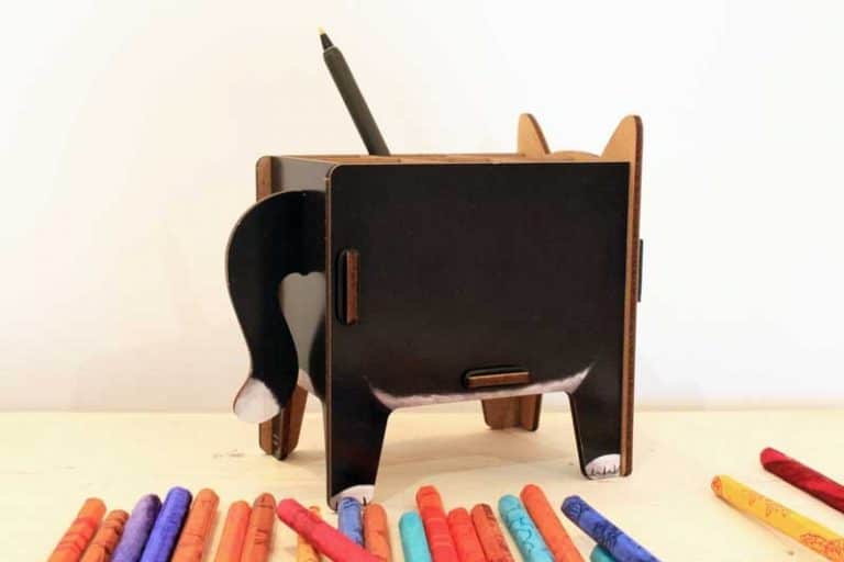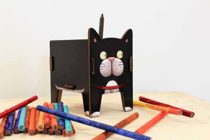 POT à CRAYONS « CHAT » EN BOIS recyclé. WERKHAUS