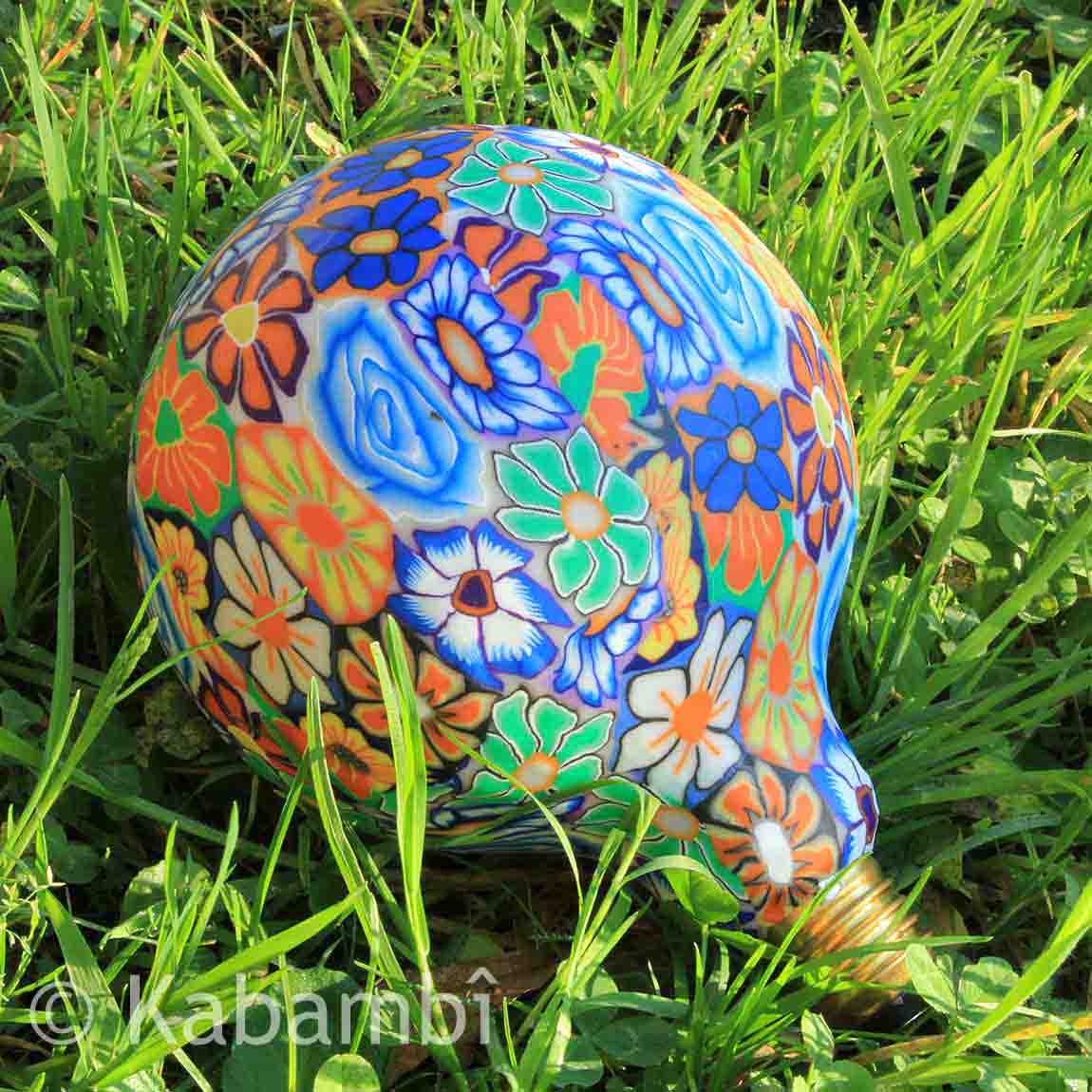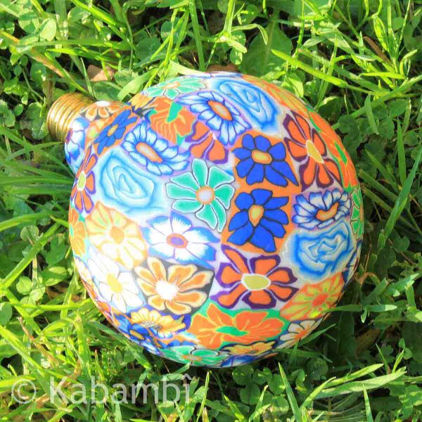 Une ampoule Led « classique » est recouverte d’une pâte de porcelaine appliquée selon une technique japonaise « façon patchwork ». Un traitement thermique consolide et fixe la pâte sur l’ampoule. L’ampoule Flower-power est conçue à la main par un atelier français. Allumée ou éteinte, l’ampoule « Flower power » est très décorative !