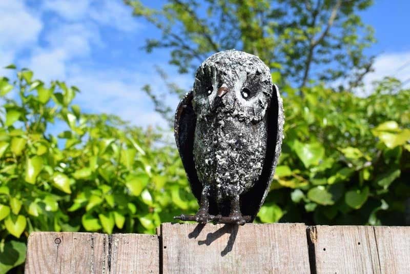 Une déco originale et champêtre pour votre jardin ou votre salon, grâce à ce bébé chouette en métal de récupération.