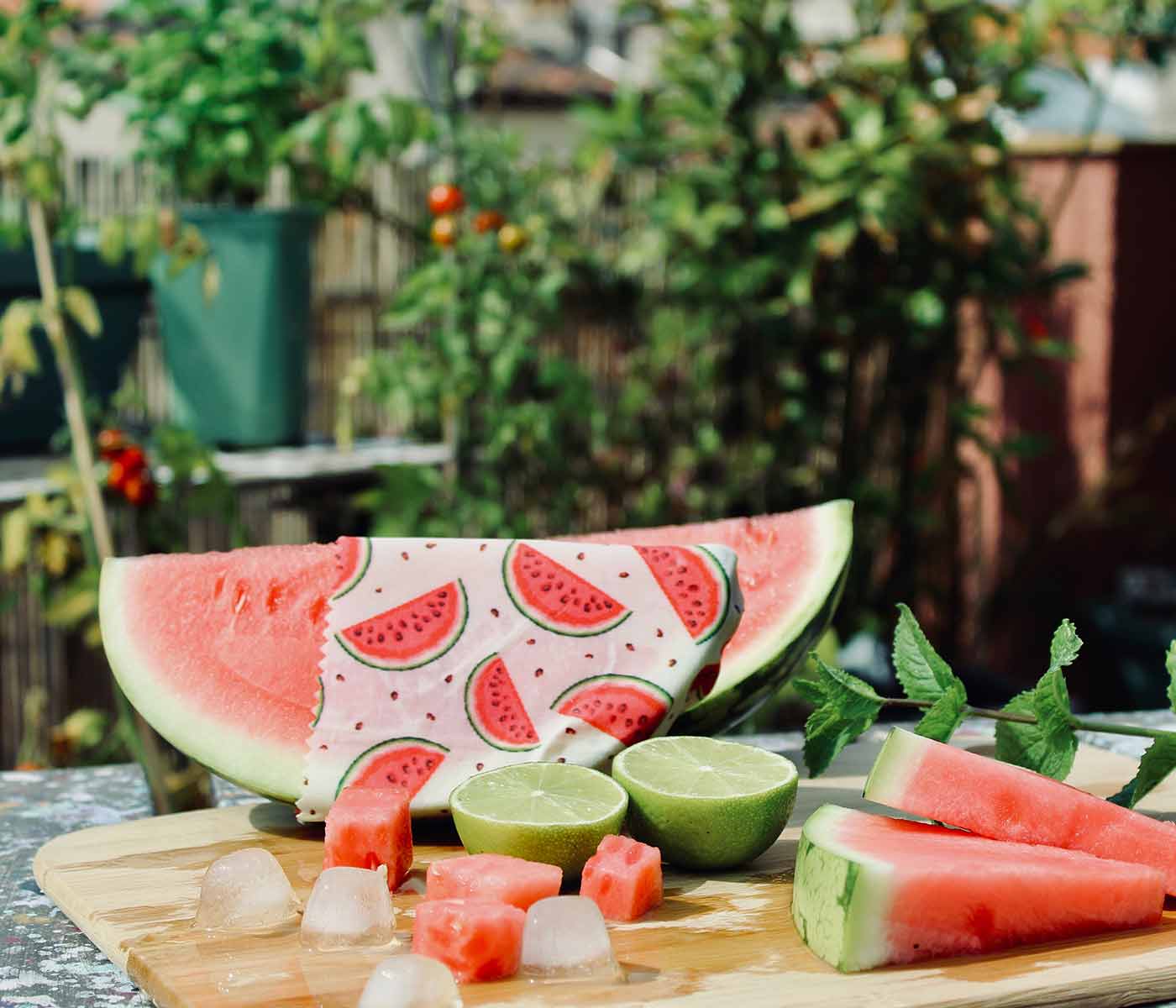⇒2 x Bee Wrap moyen (28 x 25 cm) motif pastèque.