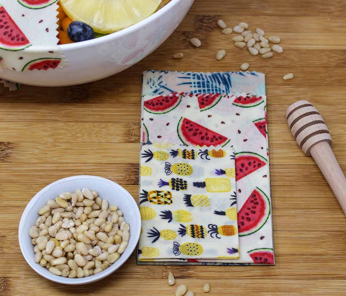 ⇒1 x petit Bee Wrap (20 x 18 cm) motif ananas.