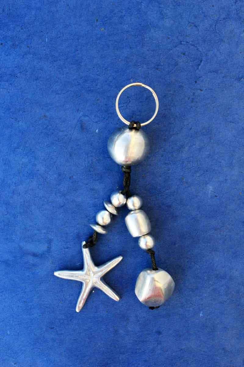 Bijou de sac/ Porte- clés « étoile de mer » en alu récupéré.