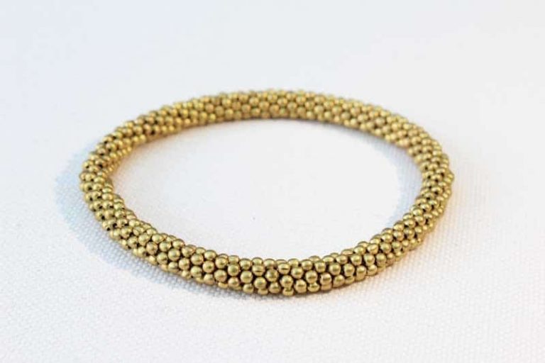 Le laiton est une matière plaisante, intemporelle et douce, ce joli bracelet de petites perles d’une finesse absolue, apportera une touche élégante à vos tenues.