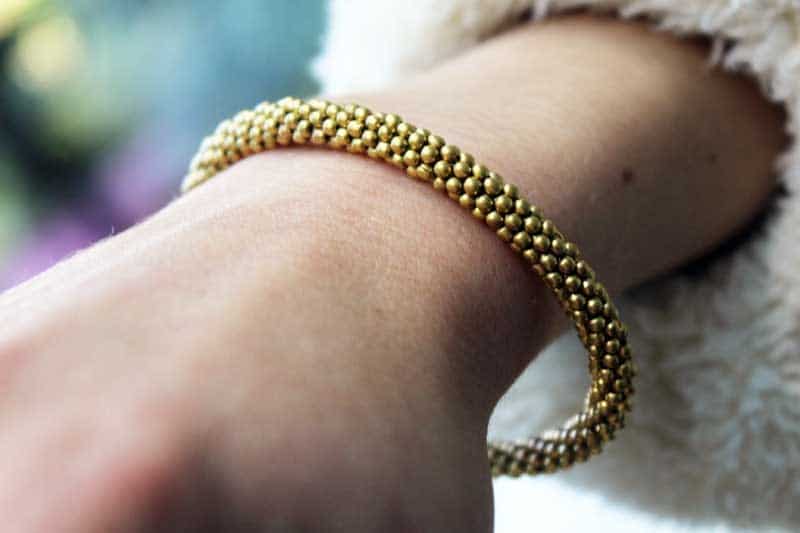 • Etonnant et chic, ce bracelet a des airs de luxe!Les perles de laiton sont montées serrées, formant un joli volume.