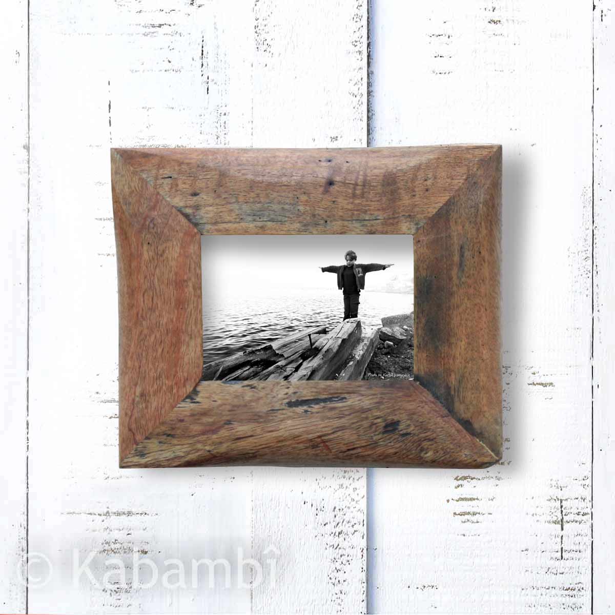 • En bois de bateau de récupération, ce cadre env. 22 x 27 cm est fabriqué à la main en Tanzanie.