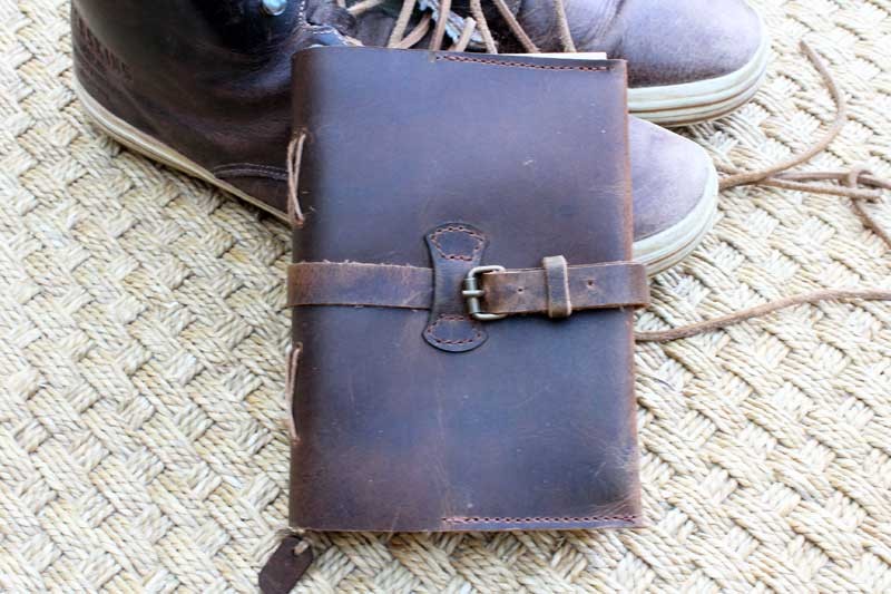 • Couverture en cuir gras épais, avec rabat.