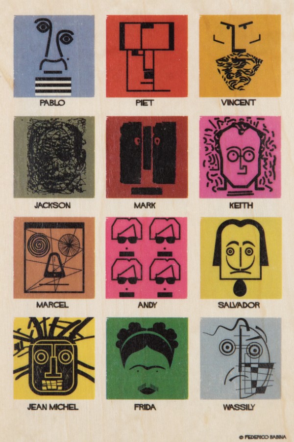 • Une carte postale en bois « Portraits d’Artists », à expédier ou à exposer en déco !