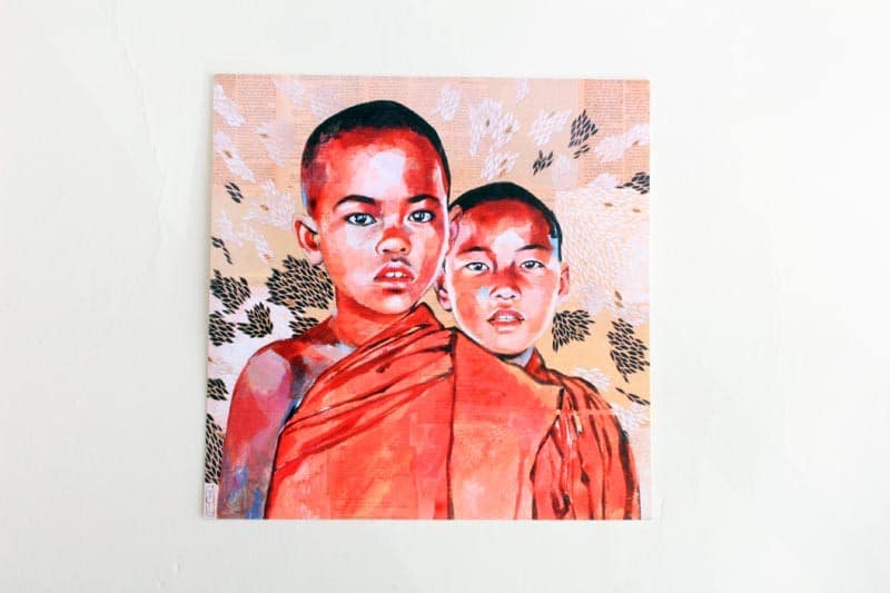 • Comment ne pas être saisi d’émotion et touché par la puissance des oeuvres de l’artiste toulousaine Stéphanie Ledoux? Les cartes postales issues de ses oeuvres  originales sont une invitation au voyage (ici « Duo de novices- Birmanie »).