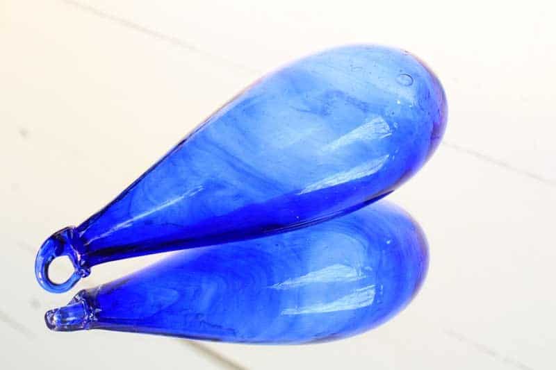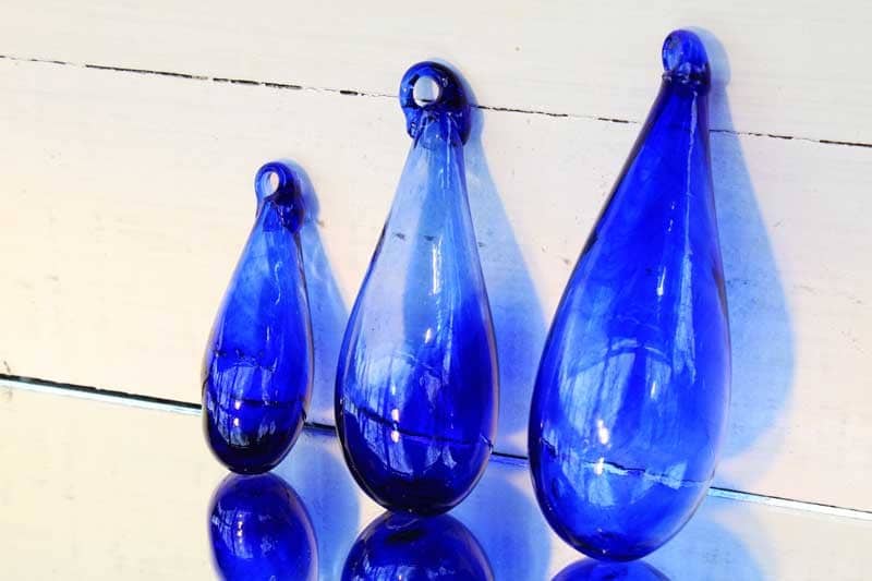 Les couleurs et les formes sont magnifiques, et bien sûr chaque goutte est une pièce unique car soufflée sans moule, aucune goutte n’est identique à une autre, ce qui en fait aussi leur charme. Le verre est teint dans la masse, ce qui donne un très bel effet de nuances de couleurs.