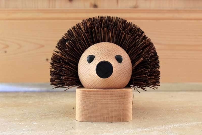 - Le corps du hérisson: Bois de hêtre huilé/ Piquants du hérisson: Fibres végétales de bassine.