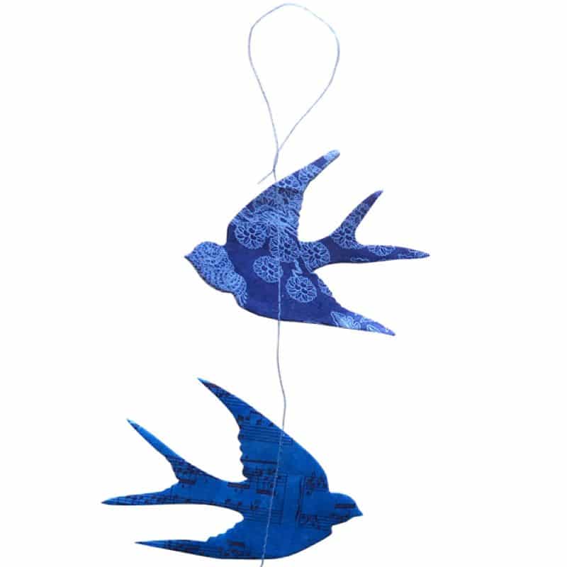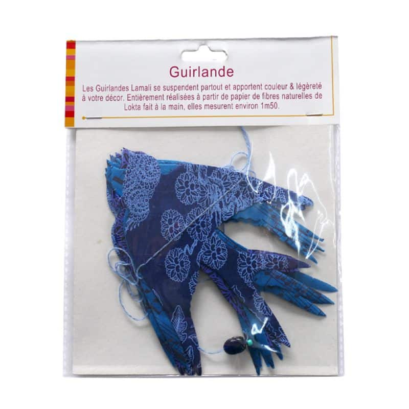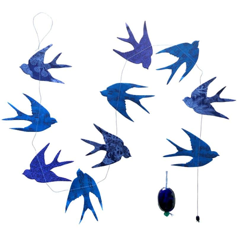 Lamali: Guirlande « Hirondelles Blue Note » en papier Lokta.