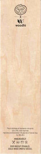 WOODHI est une marque française qui travaille à partir de bois d’érable issu de forêts du Jura, gérées durablement.