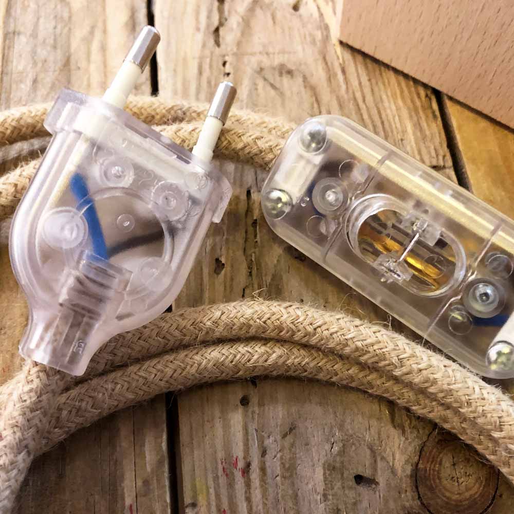 • Câble d’alimentation textile neutre en jute. Longueur 2 m.