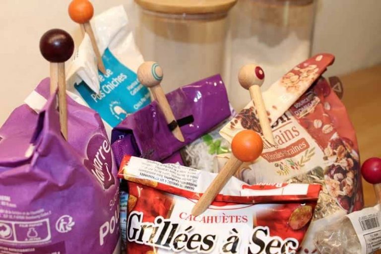 • Set de 3 pinces en bois de hêtre avec une jolie tête colorée pour fermer les sachets de farine, de chips, de café…