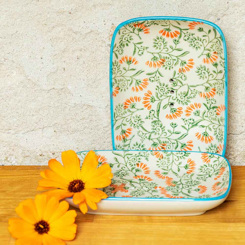 Porte savon en céramique, décoré à la main