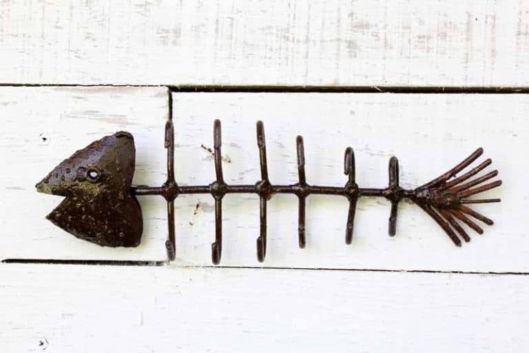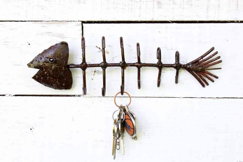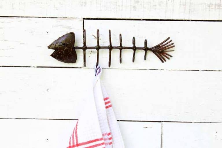 Mille et un usages peuvent être trouvés pour ce charmant porte-torchons « Arête de Poisson » en métal de récupération.