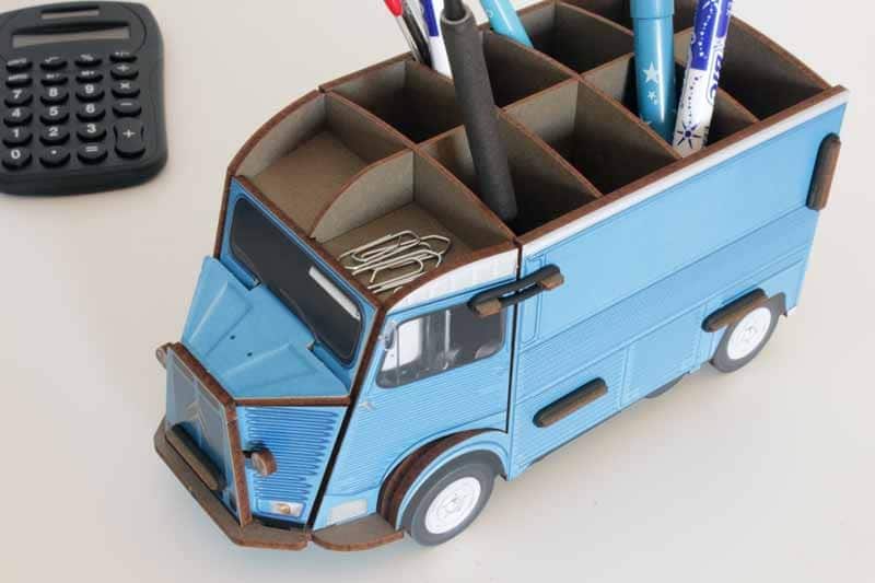 Pot à crayons Citroën HY bleu en bois recyclé. WERKHAUS