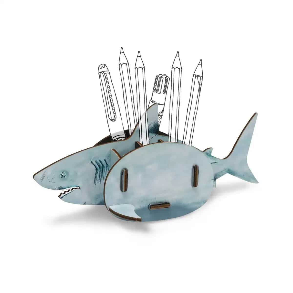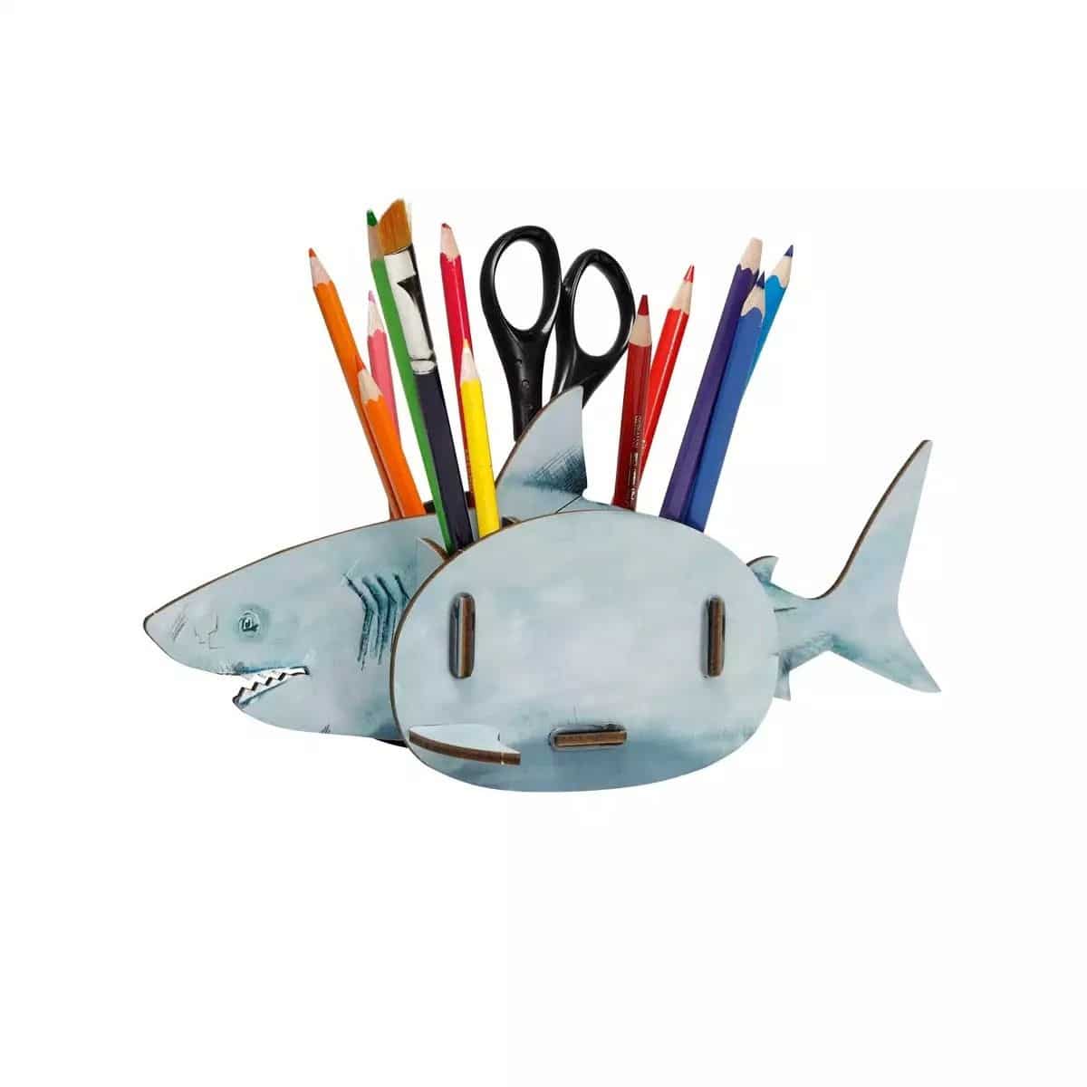 • Pot à crayons « requin » ou les dents de la mer sur le bureau !