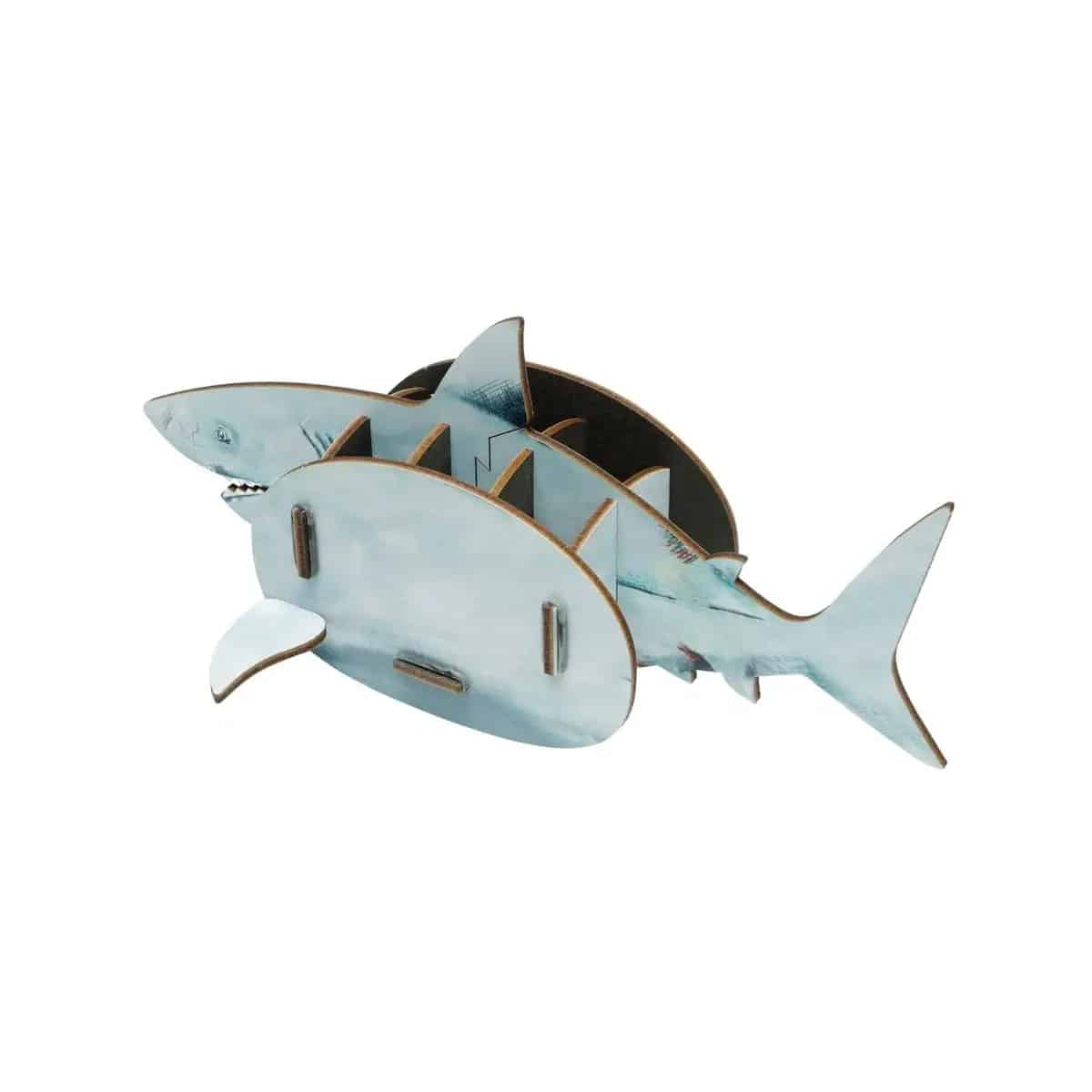 Pot à crayons « Requin » en bois recyclé. WERKHAUS.