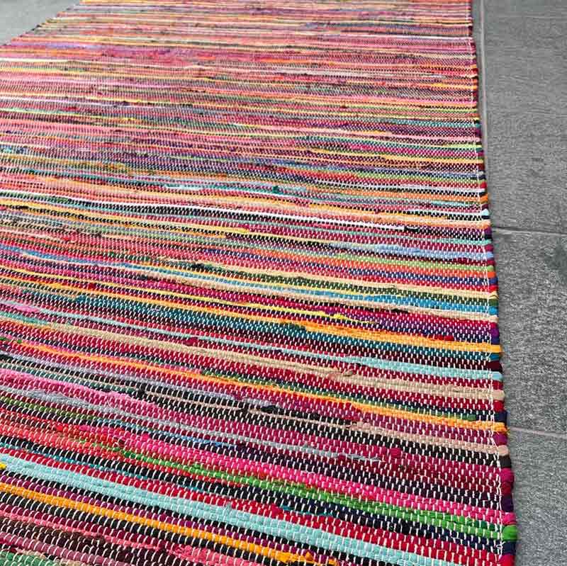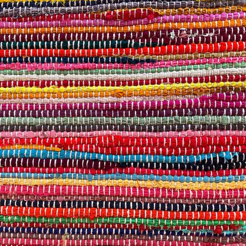 • Ce tapis multicolore est fabriqué à partir de chutes de coton lavés et découpés pour leur donner une autre utilité dans une seconde vie !
