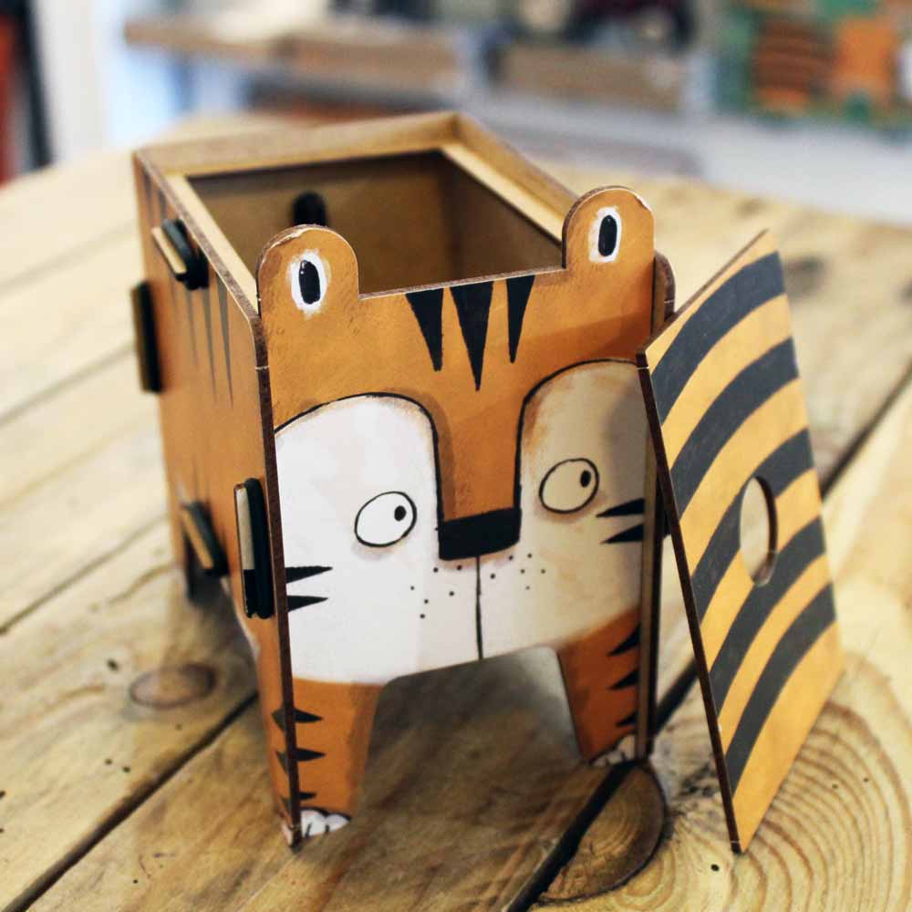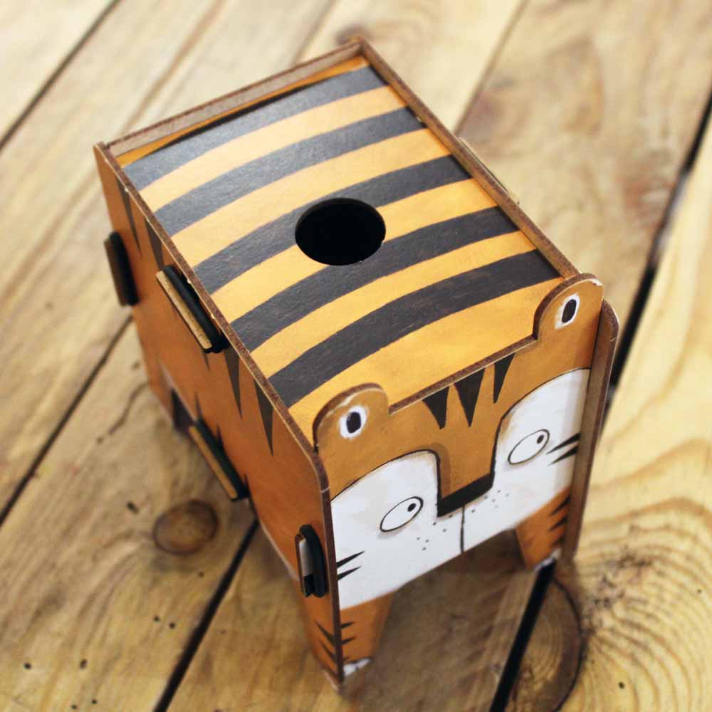 Werkhaus est une entreprise allemande créée en 1992, qui a conçu et développé un système d’emboîtage pour plaques de medium en bois recyclé.